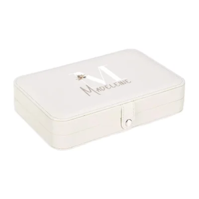 Luxe Sieradenbox Wit – Gepersonaliseerde Compacte Organizer met Gouden Design