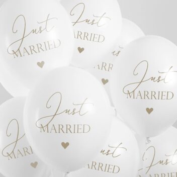 Deze sterke ballonnen in pastel zuiver wit met een gouden dubbelzijdige bedrukking Just Married maken elke huwelijksceremonie of -receptie extra