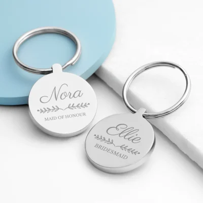 Sleutelhanger Bruiloft Gepersonaliseerd. Bedank je geweldige ‘bride tribe’ en geef ze een prachtige sleutelhanger gepersonaliseerd met hun naam en rol