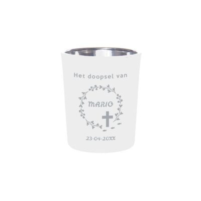 Voor een spirituele sfeer is de Krans van Geloof Theelichthouder een goede keuze: deze theelichthouder met een symbolisch ontwerp brengt warmte naar je doopfeest, en kan worden gepersonaliseerd met een ontwerp dat past bij de dag.