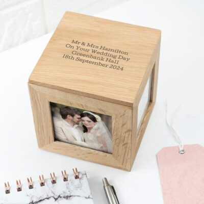 - Huwelijksjubileum: Vier de liefde met een houten fotokubus.