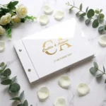 Het bold monogram past bij koppels die kiezen voor een gedurfd, modern design. Of je nu gaat voor een klassieke zwart-goud combinatie of een strakke wit-antraciet look, de kaft past bij elk bruiloftsthema.