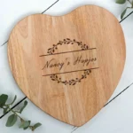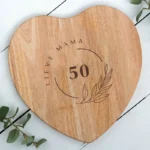 Een onvergetelijk cadeau voor jubilea, bruiloften of Valentijnsdag! Deze hartvormige serveerplank combineert FSC-gecertificeerd Beukenhout met een sierlijke botanische gravure. Personaliseer de plank met een Naam én een Persoonlijke Tekst voor een uniek aandenken. Inclusief gratis luxe geschenkdoos!