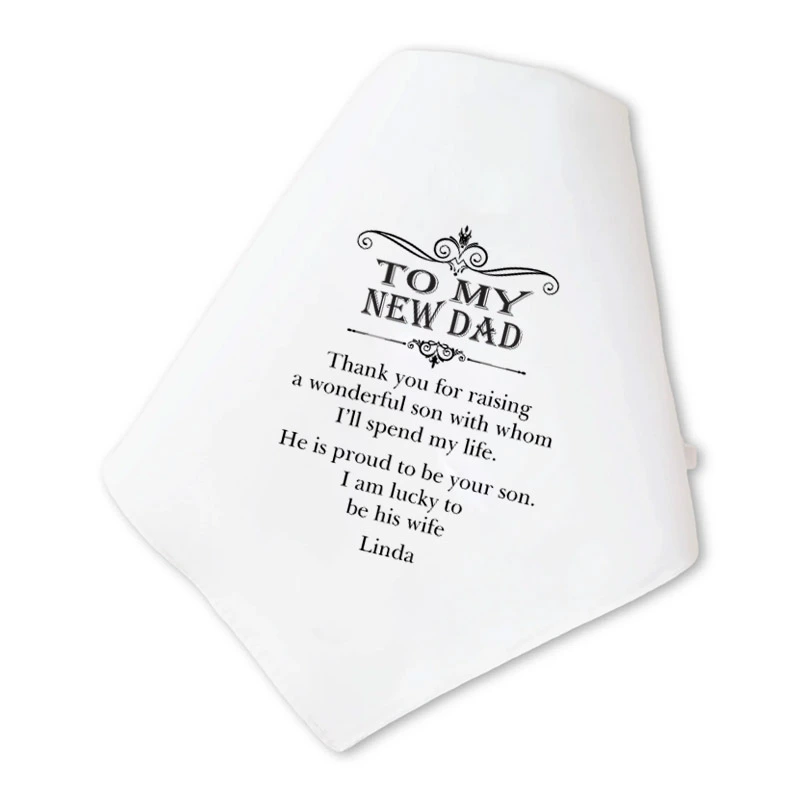 Verras je schoonvader op je trouwdag met onze Gepersonaliseerde Zakdoek “To My New Dad”. Dit ontroerende en doordachte bruiloft cadeau is een prachtige manier om je dankbaarheid te uiten voor het opvoeden van de geweldige man met wie je je leven deelt. Een bijzonder huwelijkscadeau dat een blijvende indruk zal achterlaten en jullie nieuwe familieband zal versterken.