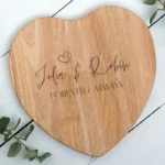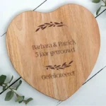 Romantisch “Just Married” aandenken – Hartvormige kaasplank met gravure