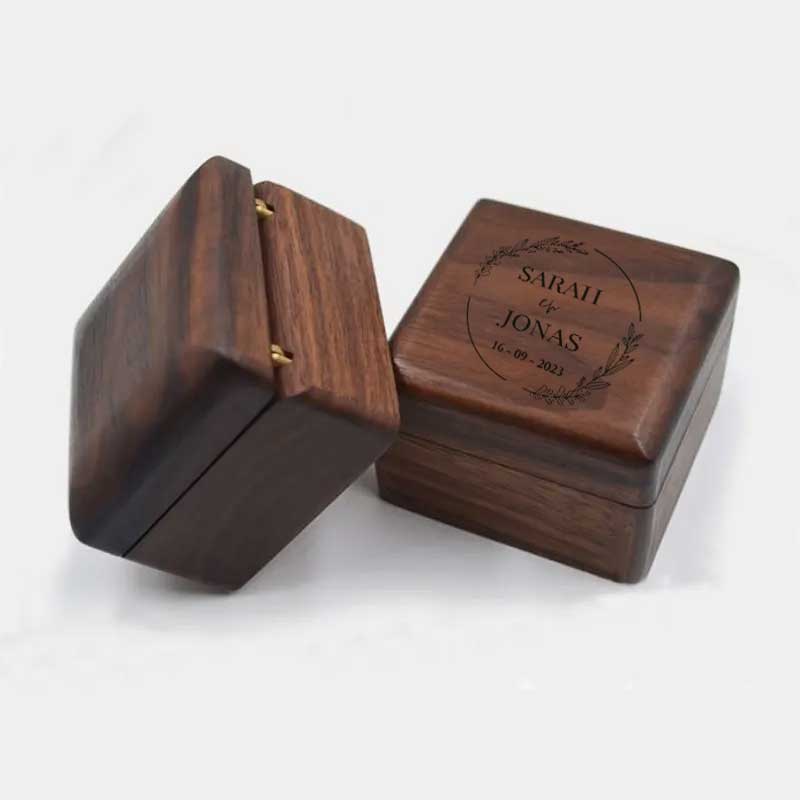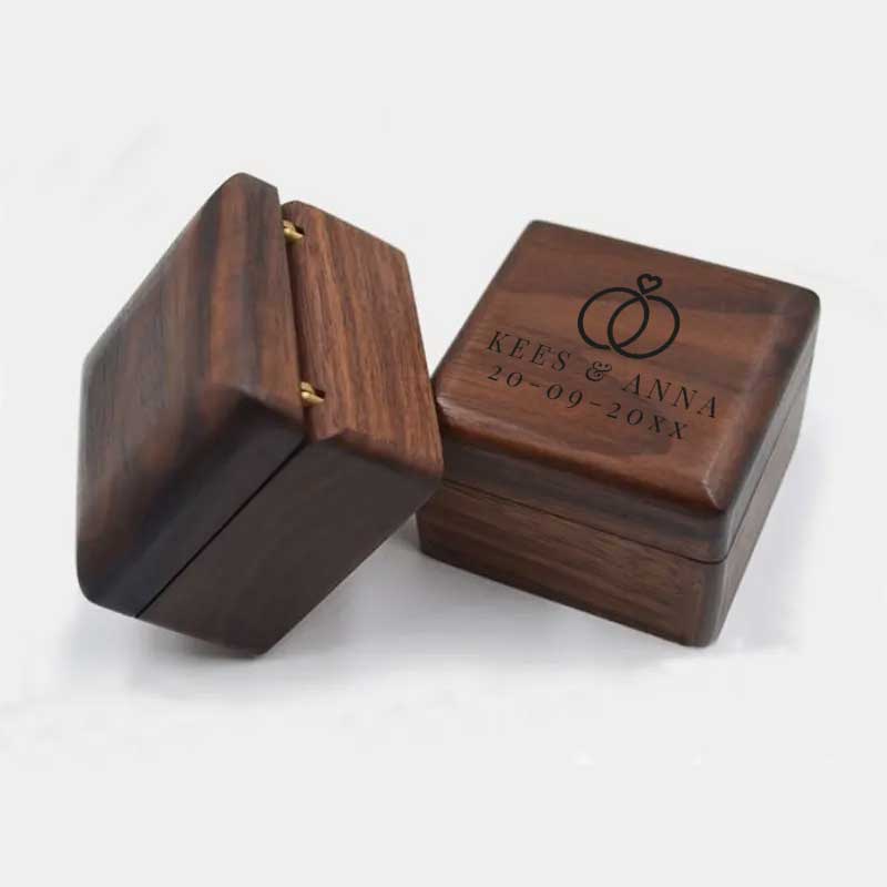 Dit walnoot houten ringendoosje is de favoriete keuze voor liefhebbers van een natuurlijke en luxe uitstraling. Het is de verfijnde opvolger van onze klassieke designs, uitgevoerd met de precisie van onze UV-studiotechniek.