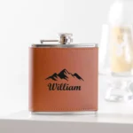 Gepersonaliseerde Leren Heupfles – Bruin/Zwart met Naam | Cadeau voor Avonturiers