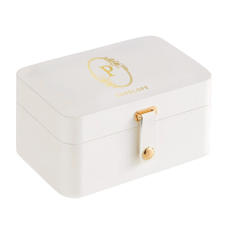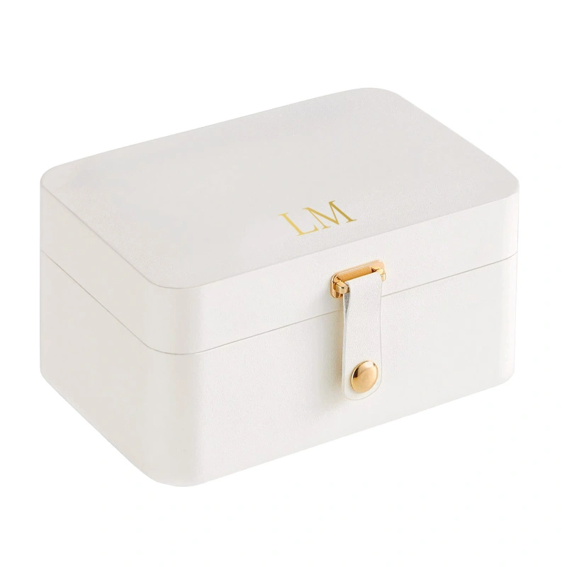 Luxe Sieradenbox Wit – Gepersonaliseerde Compacte Organizer met Gouden Design