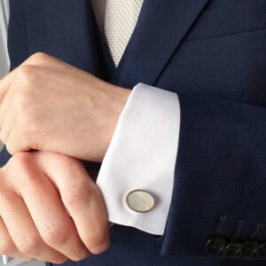 Gegraveerde metaal manchetknopen voor weddings of jubilea, levertijd 1-3 werkdagen. Personaliseer met tekst – eer die vader-bruid connectie op stijlvolle wijze!