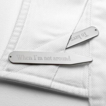 Gegraveerde Kraag-Verstevigers ‘Secret Message’ Een geheime boodschap alleen voor hem maakt deze kraagverstevigers zowel een prachtig als nuttig cadeau! Perfect
