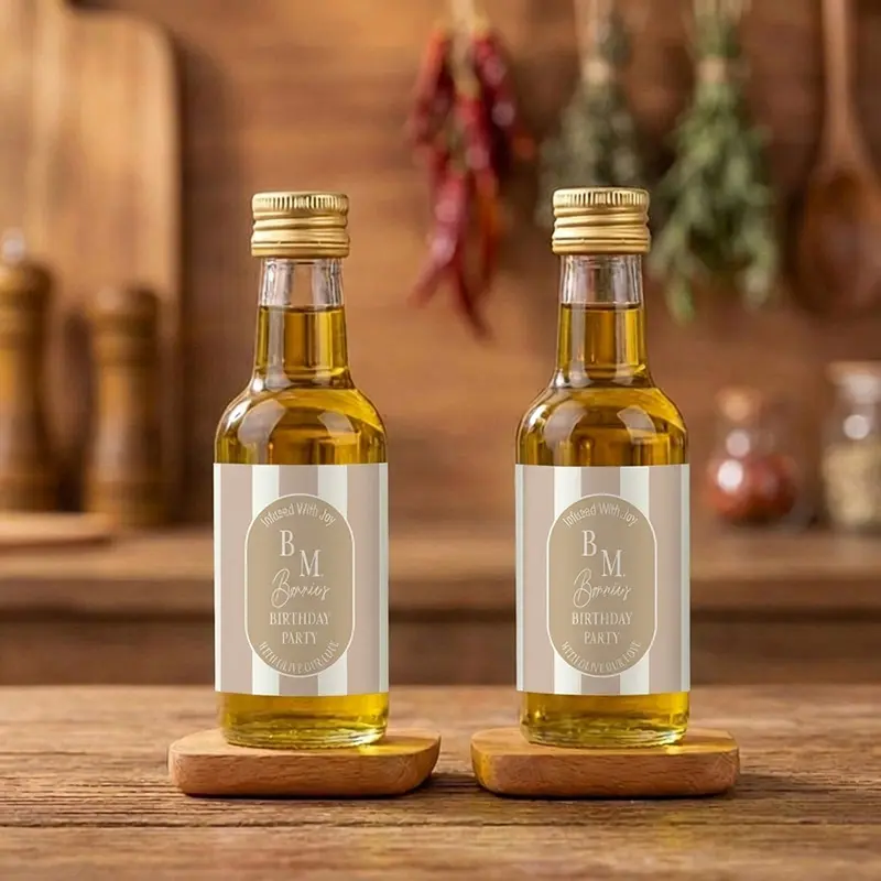 Een heldere extra vergine olijfolie geeft de mooiste uitstraling door het transparante flesje. Gekruide olijfolie met citroen of rozemarijn maakt het bedankje extra bijzonder.