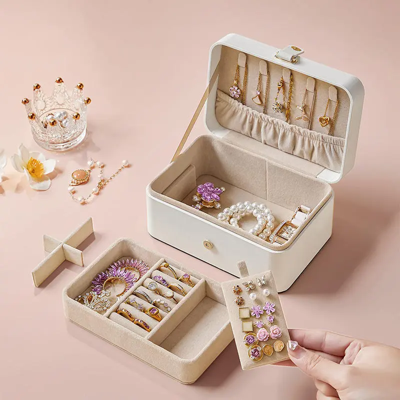 Slimme Indeling: 2-laags capaciteit met handige vakverdeling voor alle soorten sieraden.