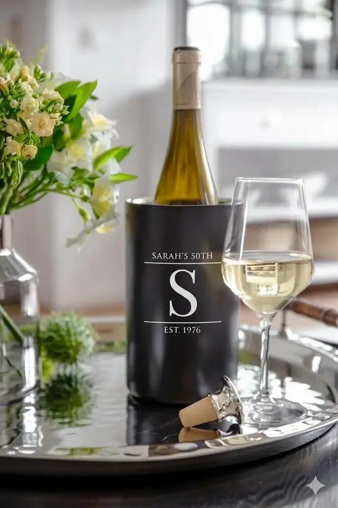 Wordt ze 50? Dat verdient een cadeau met karakter. Onze Modern Matzwarte wijnkoeler (Urban Black) combineert een industriële look met ongekende functionaliteit. Gecombineerd met het exclusieve Sarah’s 50th design — met de prominente ‘S’, elegante lijnen en haar eigen naam — is dit hét ultieme persoonlijke cadeau voor een gouden verjaardag.